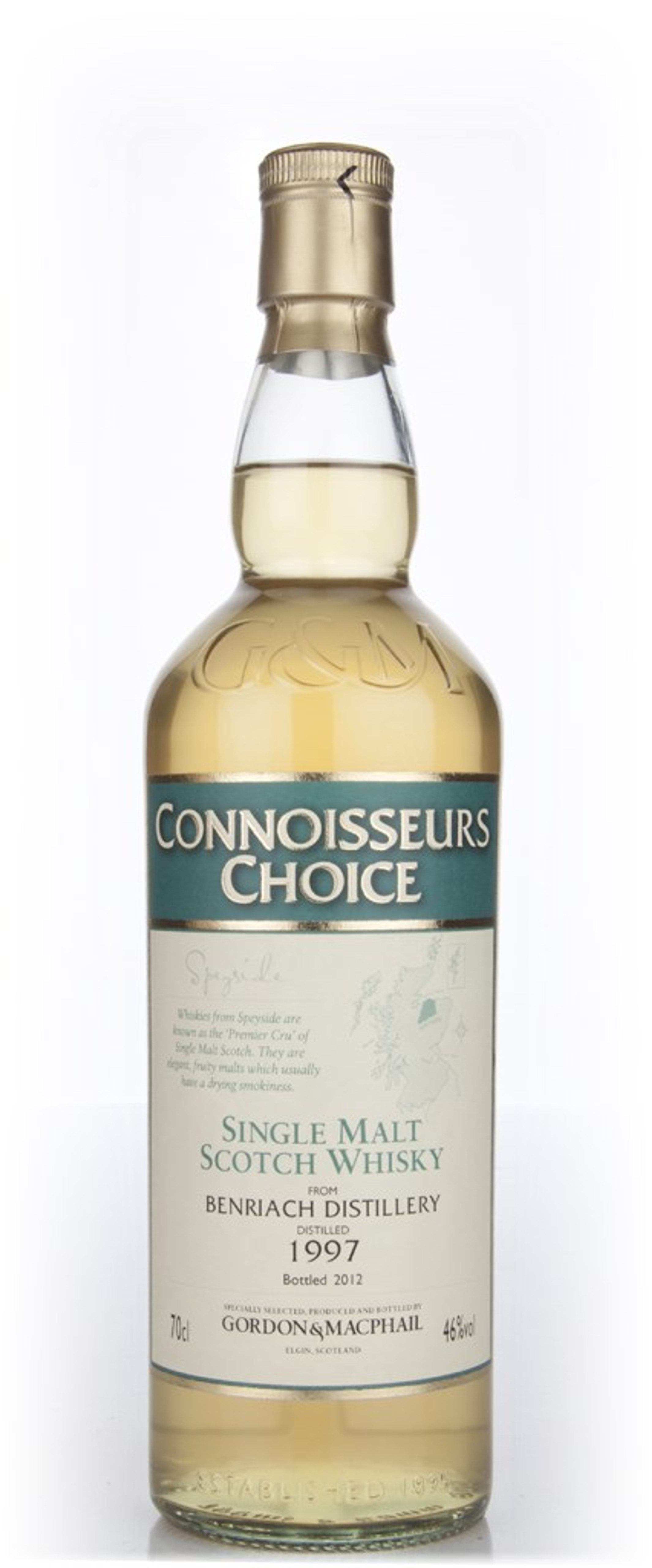 Bottled at the higher strength of 46%abv (as opposed to previous Connoisseurs Choice bottlings) this is a 1997 vintage BenRiach, bottled by Gordon and MacPhail in 2012.
