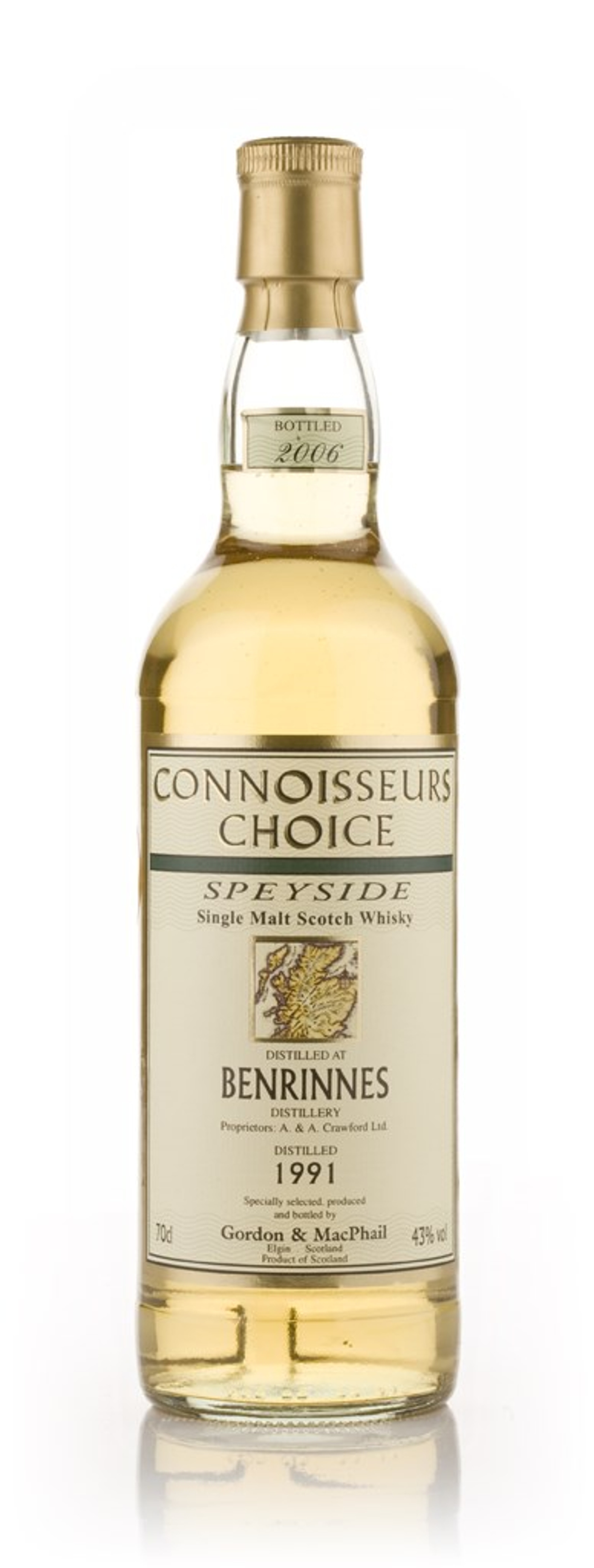 A 17 year old from the Connoisseur's Choice range, this single malt underwent Benrinnes 'partial triple distillation', being distilled as it was in 1991and bottled by Gordon and MacPhail.