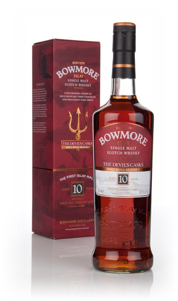 Well, good friends, this is the second release of Bowmore's Devil's Casks single malt Scotch whisky, the first of which was released in 2013 (and proved very popular indeed). This small batch release was matured exclusively in first fill Sherry casks, giving it an extraordinary ruby hue and stupendous flavour profile. The story behind these releases features a tale of the Devil visiting Islay, being chased away by an angry mob. To escape, the Devil hid in a cask of Bowmore whisky destined for the mainland!