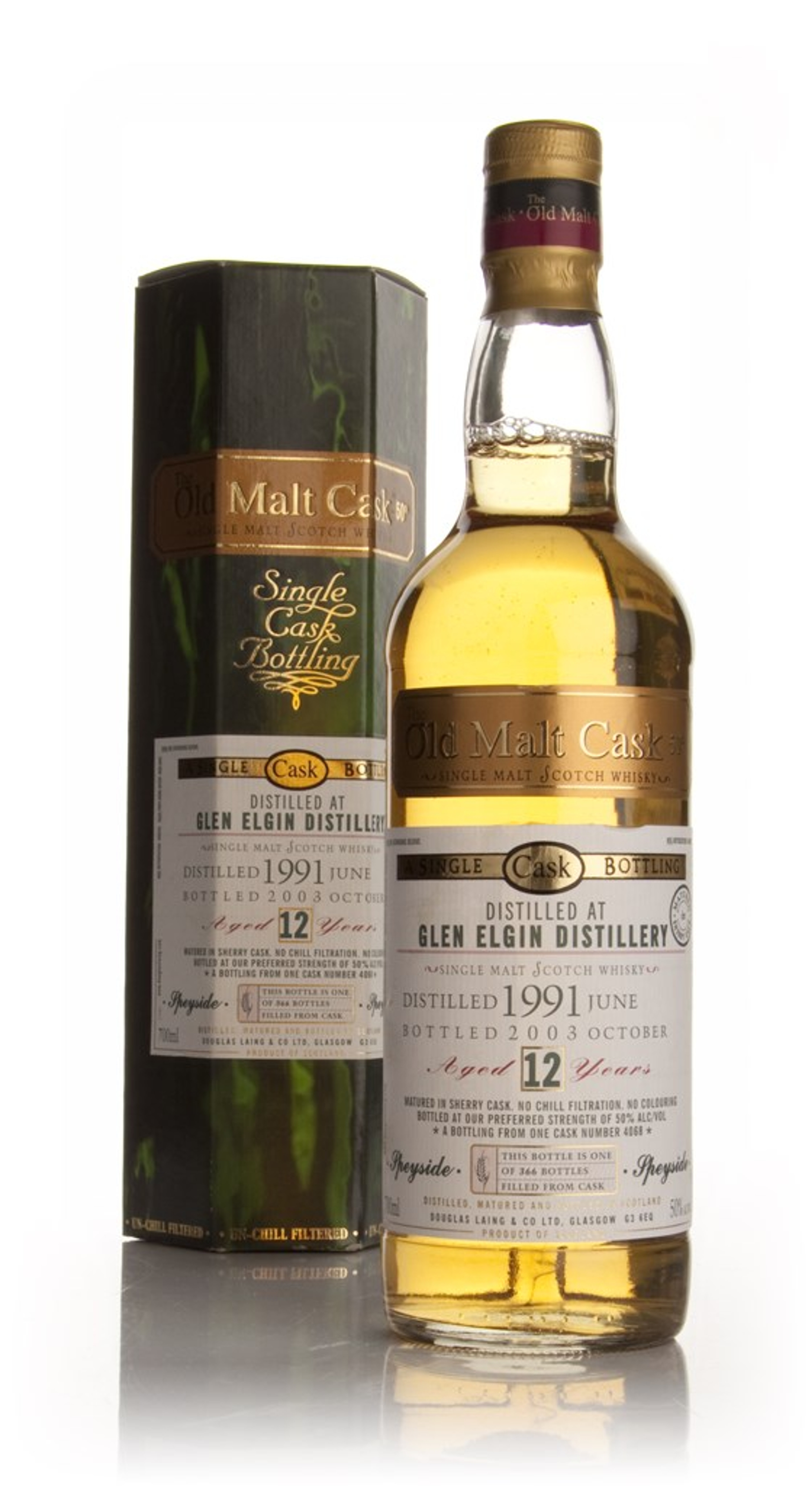 A single cask Glen Elgin from Douglas Laing's Old Malt Cask range. This was distilled in June 1991 and matured for 12 years in cask number 4068 before bottling in October 2003 by Douglas Laing. An outturn of 366 bottles.
