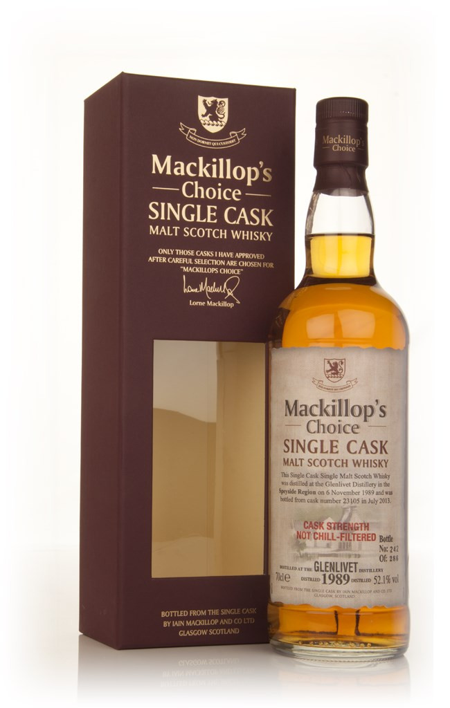 The Mackillop's Choice range is made of independent bottlings of casks that are deemed to be worthy of the brand's name, just like this Glenlivet, which was distilled in October 1989 and subsequently bottled in July 2013. 286 bottles were produced.