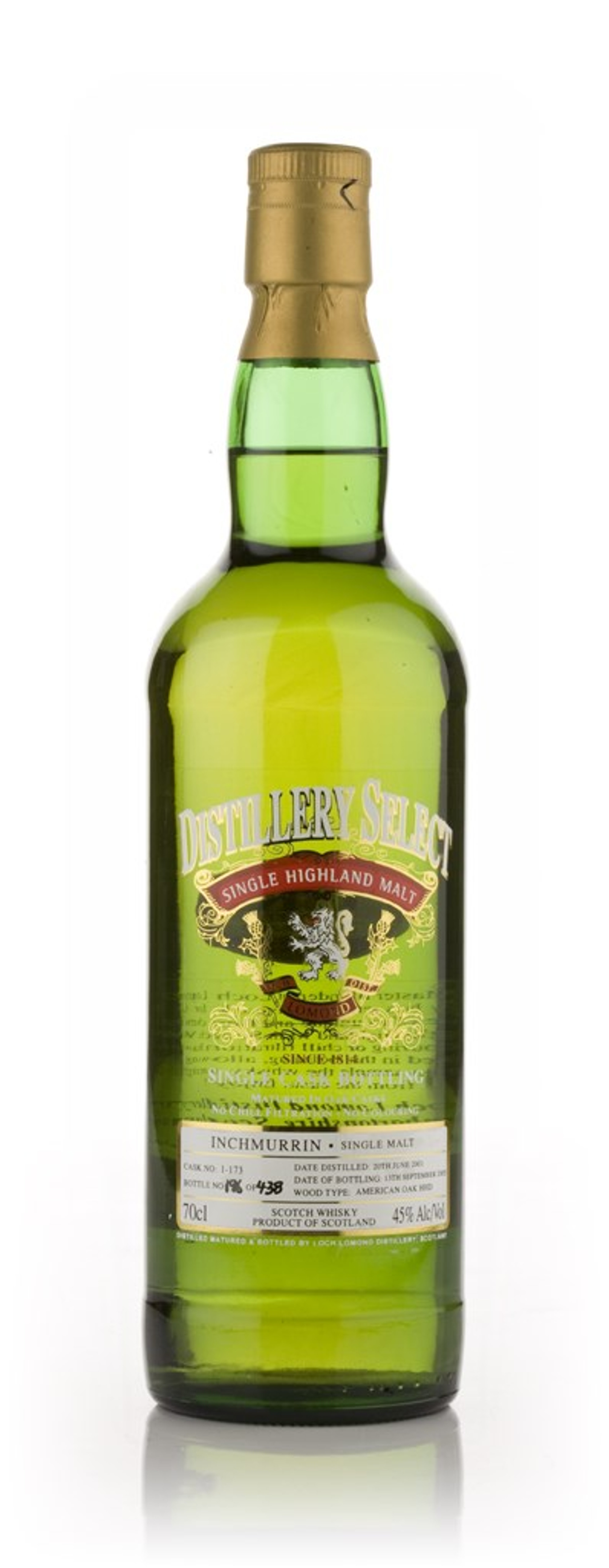 Part of a release of just 438 bottles of Inchmurrin from Loch Lomond. This was distilled in 2001 and bottled on the 13th September 2005.