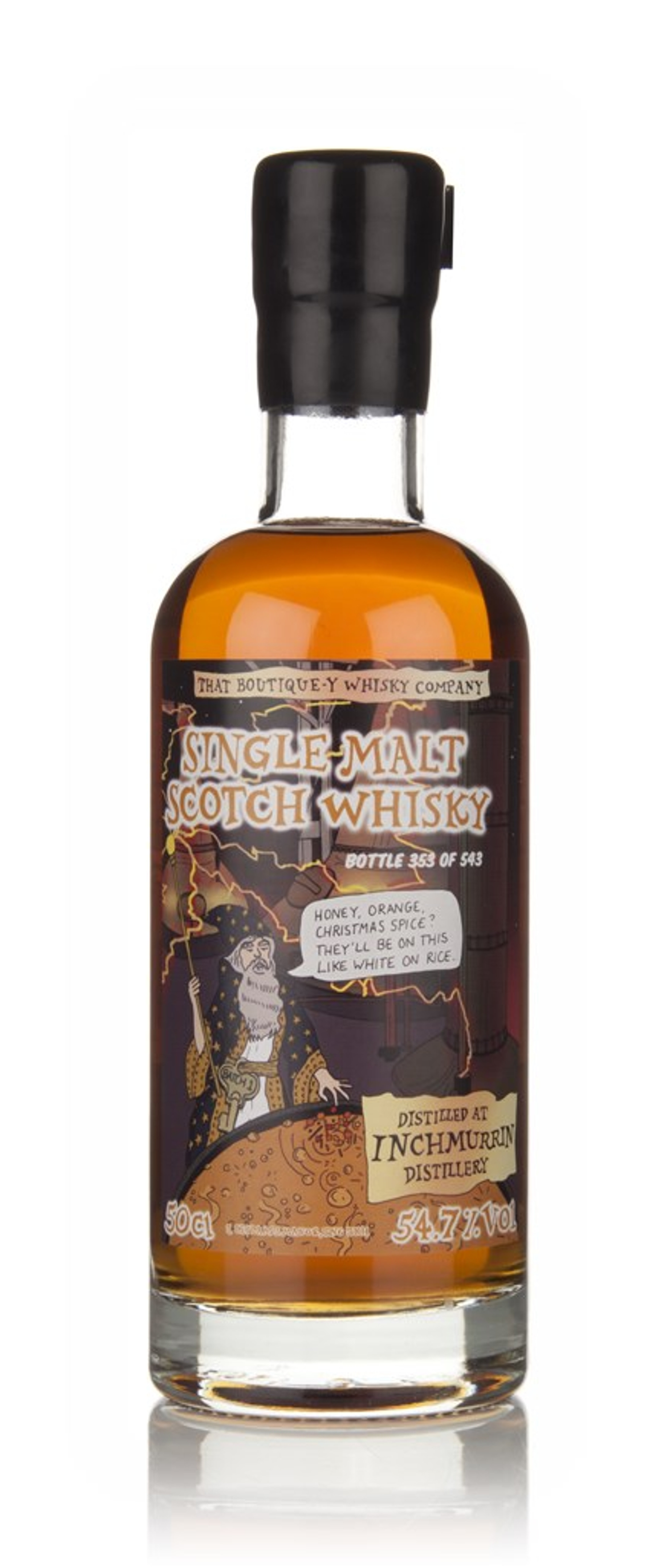 Merlin's beard! What have we here? Why it's That Boutique-y Whisky Company's first batch of Inchmurrin single malt Scotch whisky! Distilled at Loch Lomond, the label clearly shows just how they produce so many different styles of whisky at one distillery. Just kidding, it's not really magic, in fact, it's pretty simple really. You see they have different types of stills and erm... use different levels of peat and there are these rectifying heads you see and erm... still necks and erm... look, it's all science... and art... and erm... magic?!