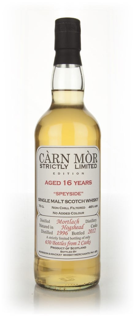 This is a 16 year old Mortlach from Carn Mor's strictly limited range. It was distilled in 1996 and aged in two hogsheads before bottling in 2012.