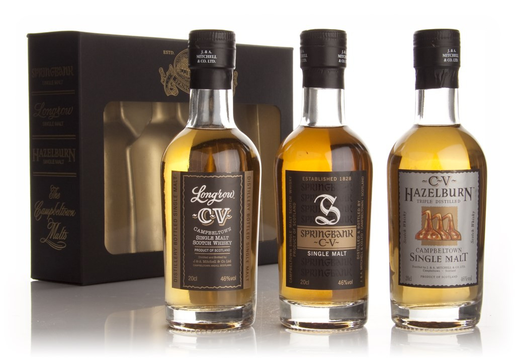 A little trio of CV malts from the Springbank distillery in Campbeltown. In it there is the triple distilled, and very smooth, Hazelburn, the peaty Longrow, and the full-bodied Springbank. By CV they really are referring to a curriculum vitae, as each whisky is a blend of casks from different vintages and of different styles to represent the history and flavour that each whisky has to offer.