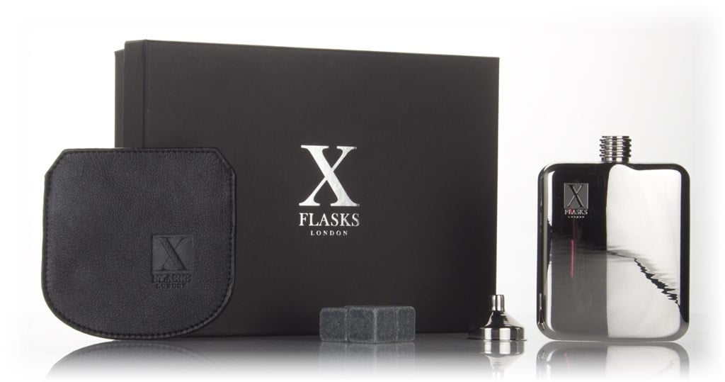 This is a silver X Flask (the X is a reference to the 'X factor' which special gifts posses), along with a black leather pouch, funnel and four stone ice cube.