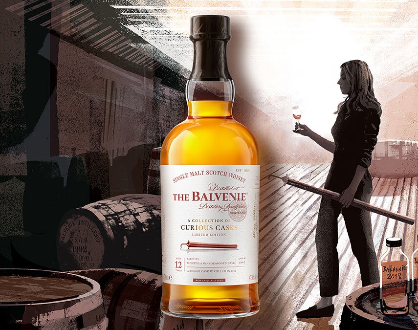 The newest addition to A Collection of Curious Casks takes The Balvenie on a journey south to Andalusia. This 12-year-old Speyside single malt has matured in European oak butts previously seasoned with sweet wine from Montilla, a Spanish town celebrated for its lush dessert wines.