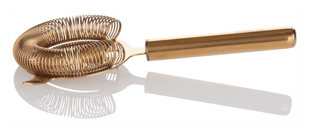 A rather flashy gold plated Hawthorne strainer here from Urban Bar. An essential bit of bartending kit for the home mixologist.