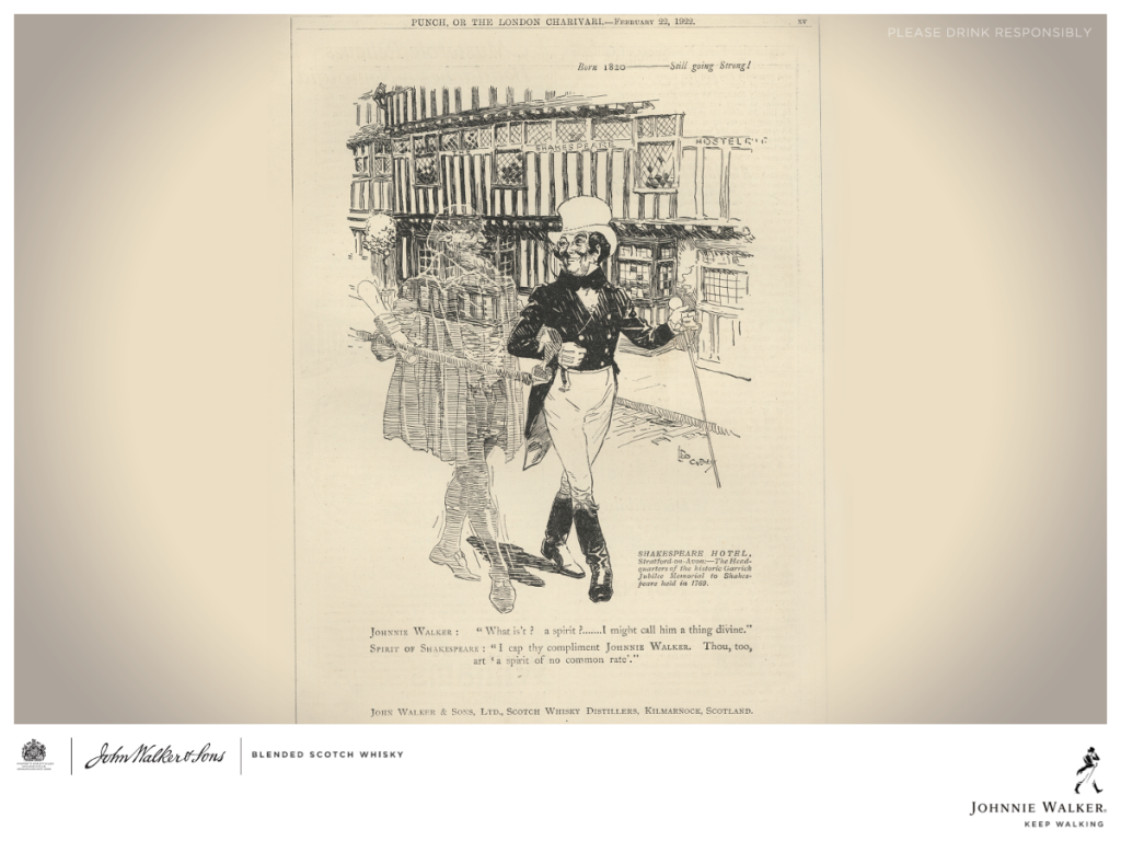 But Johnnie Walker recovered: the book explains how much of the vigour returned to the brand in the late ‘80s and ‘90s. Opportunities for de luxe whiskies, especially in emerging markets, were capitalised on with the launches of Blue, Gold and Green Label. Meanwhile the Striding Man himself was invigorated: “At the beginning of this century, a bit like happened in 1908 with the creation of the Striding Man, that character was absolutely rejuvenated by BBH [ad agency Bartle Bogle Hegarty] in the ‘Keeping Walking’ campaign, which actually saw the brand grow again, from around ten million cases to 20 million, astonishing in a short period.” He went on to say: “In the same way that the Striding Man had reached out to consumers in the early 20th century, this new manifestation based around this idea of personal progress, captured consumers’ imaginations and it was brought to life with all that same brilliant creativity that had been seen in the Edwardian era.”