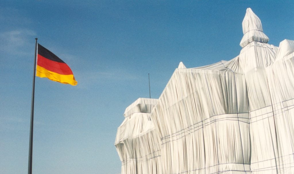 You will remember them of course as the guys who wrapped things. Starting in the 1950s with mundane household objects such as chairs and bicycles they graduated to wrapping trees, fences, bridges, monuments, buildings and, on occasion, islands. They wrapped the Pont Neuf in Paris and even the Reichstag (below).