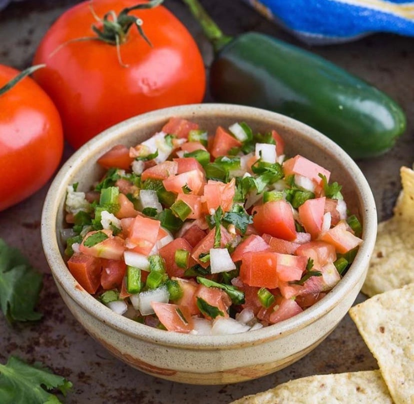 NI: Tacos, enchiladas, tamales, and flautas Mexicanas to name but a few dishes. And then, of course, for the drinks, the Margarita comes out on top; then there are Palomas, copitas of mezcal, Batangas, and for the non-drinkers there is delicious Horchata. I have developed a bit of a ritual of putting a couple of spoons of Casamigos into food. I love experimenting, and have accidently made some rather yummy ceviche, chicken and even pasta dishes with a small trickle of Tequila. But the dish I am showing you today is especially for Cinco de Mayo and is my version of a Mexican tomato salsa, that usually is accompanied by lashings of guacamole and tortillas!