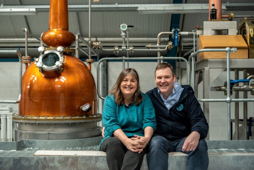 Looking happy in their distillery, it’s James and Moira Doherty!