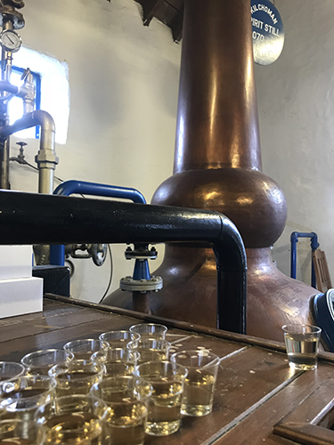 Dramming in the Kilchoman stillhouse