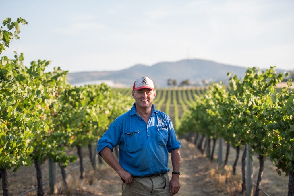 Wine maker Justin Jarrett from See Saw among his vines in New South Wales