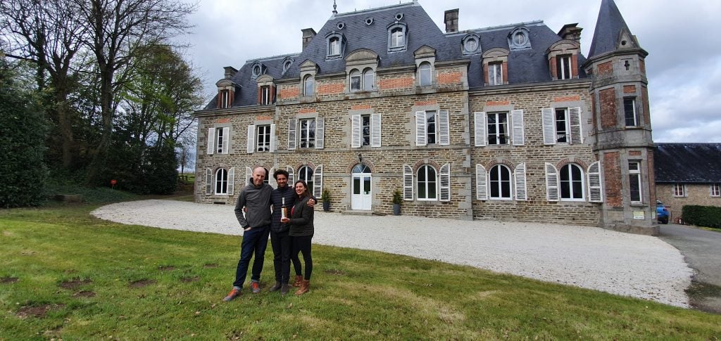 From left: Tim Etherington-Judge; Pierre Martin Neuhaus, owner of Distillerie Coquerel; Stephanie Jordan