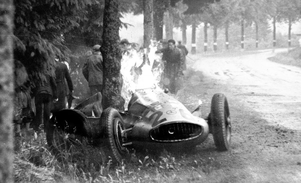 Richard Seaman’s wrecked car, Belgian Grand Prix, 25 June 1939. Photo courtesy of Daimler-Benz