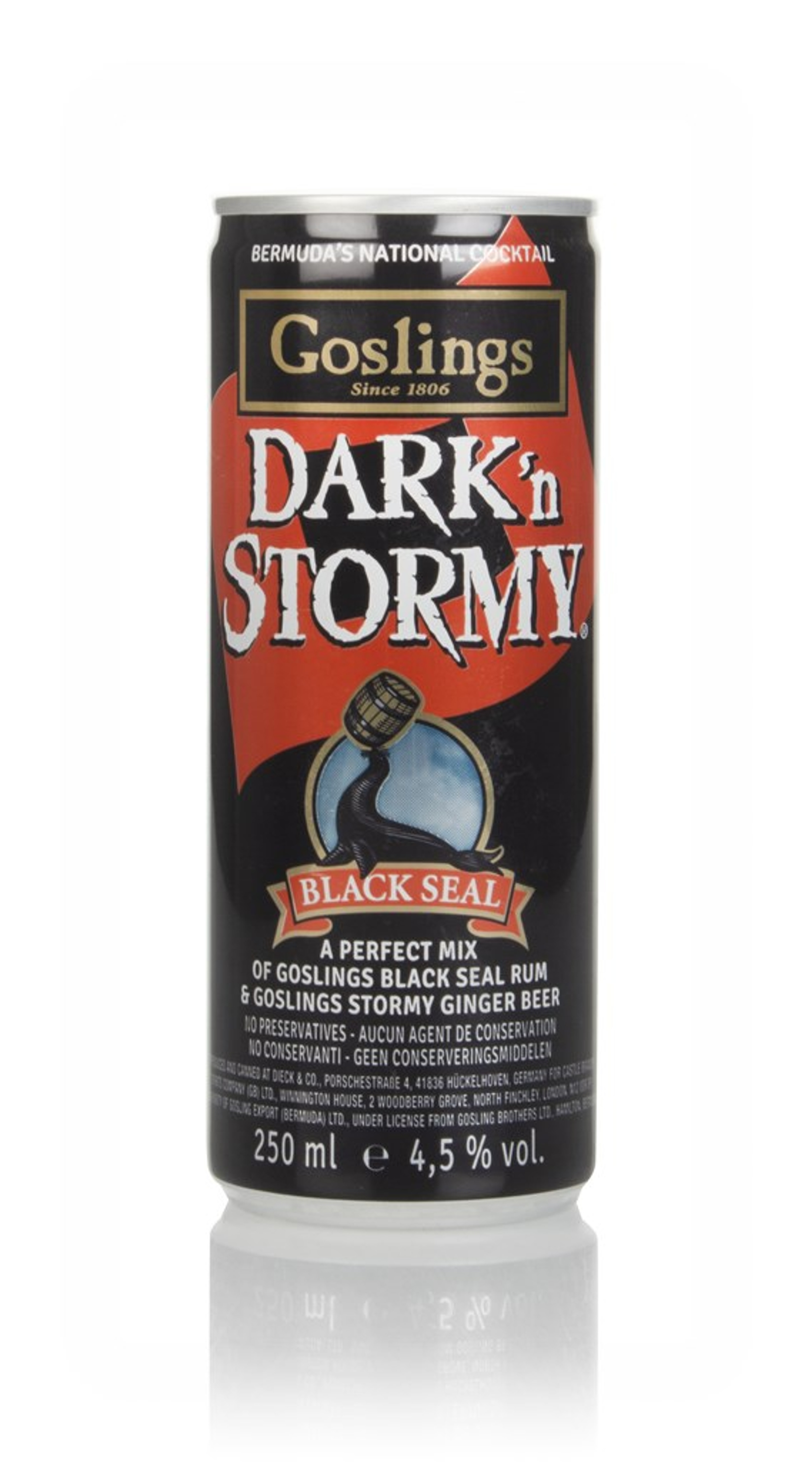 It was introduced in cans in Bermuda about 1980. Goslings paired up with Barratts - local soda producers- to create a dark and stormy in a can. It was (is?) good. Big problem - it was heading off to local schools in lunch boxes. The problem was resolved.