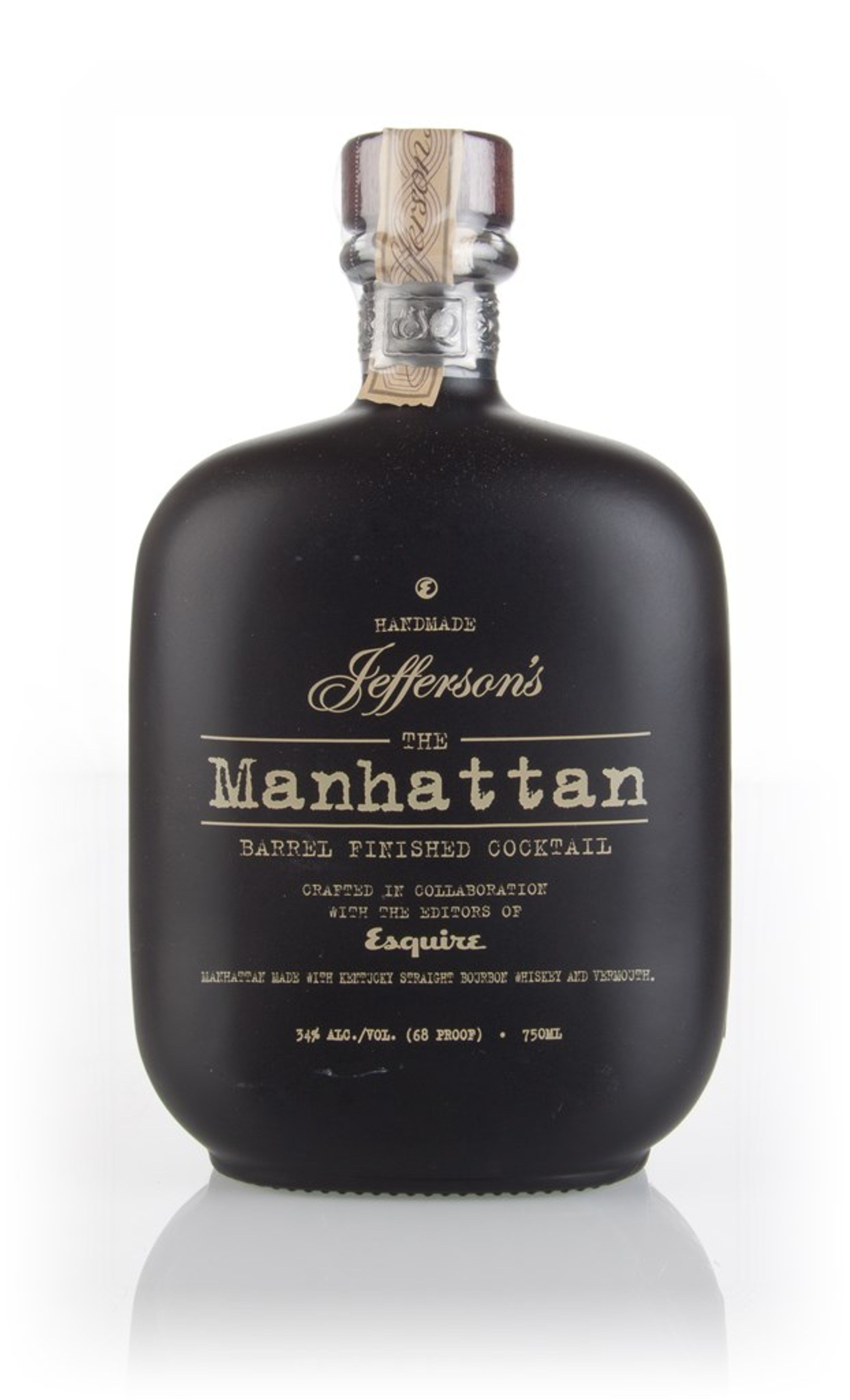 A bottled Manhattan cocktail from Jefferson's bourbon created in collaboration with the editors of Esquire magazine! It's made with 6 year old Jefferson's Kentucky straight bourbon as well as sweet and dry vermouth (so it's what's known as a 'Perfect' Manhattan) and barrel aged spiced cherry bitters. It's then rested in an oak cask for 90 days. To serve, pour it over ice, stir, then strain into your glass.