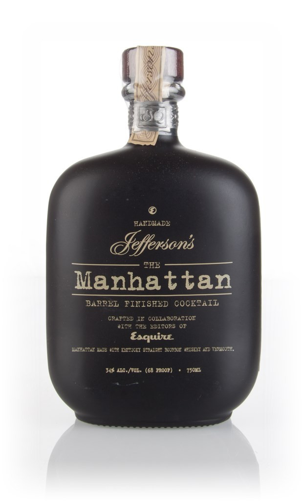 A bottled Manhattan cocktail from Jefferson's bourbon created in collaboration with the editors of Esquire magazine! It's made with 6 year old Jefferson's Kentucky straight bourbon as well as sweet and dry vermouth (so it's what's known as a 'Perfect' Manhattan) and barrel aged spiced cherry bitters. It's then rested in an oak cask for 90 days. To serve, pour it over ice, stir, then strain into your glass.