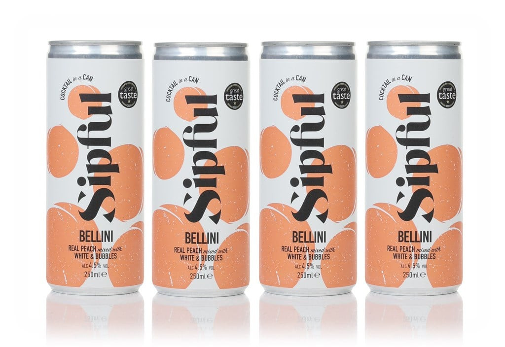 Splendid stuff from the Sipful sparkling cocktail range – here we have its take on the classic Peach Bellini! Combining 100% natural peach juice with organic sparkling wine, it's a tasty treat and all you need to do is chill it. You could do this in a fridge if you're enjoying it at home, but seeing as this pack contains four 250ml single serve cans, why not pack up a cool bag and enjoy some on the go?!