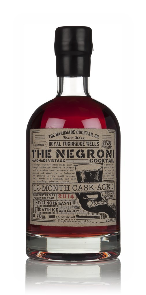 So, cask-ageing is a definite awesome thing for drinks other than whisky, and the Handmade Cocktail Company know this as a fact, which is why they allowed this Negroni mature in an oak cask for 12 months before bottling it. The classic recipe they use, featuring premium-strength English copper pot-still gin, top-quality sweet vermouth and a mix of aperitifs, develops breathtaking intensity, depth and complexity from the cask-ageing process. So, yes. Cask-ageing. Awesome.