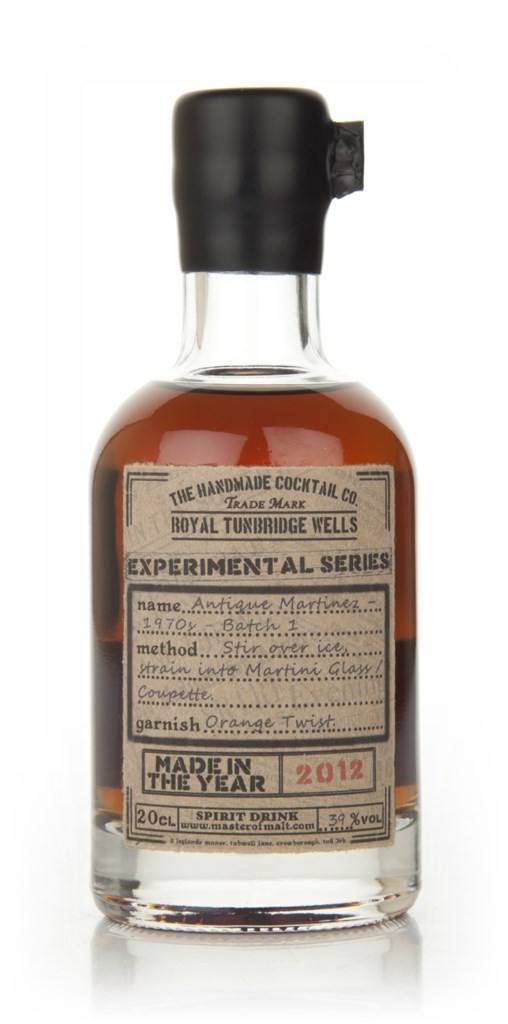 Gibley's Gin from the 1970s; Punt E Mes, Martini Rosso and Rosso Antico also from the 1970s, and a dash of Luxardo Maraschino from the 1960s, all mixed together into a Martinez cocktail you can pour straight from the bottle without the hassle of mixing it yourself - happy days.