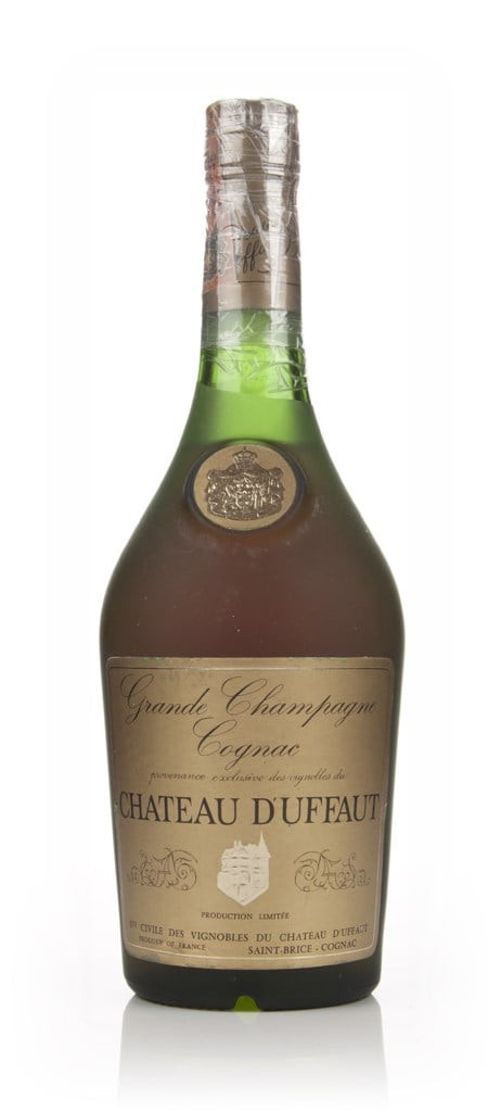 Antique Grande Champagne Cognac, all the way from the 1970s! It was made by Château d’Uffaut. There does seem to be sellotape around the neck of the bottle, which actually lets you to see through the frosted glass a little bit. Science!