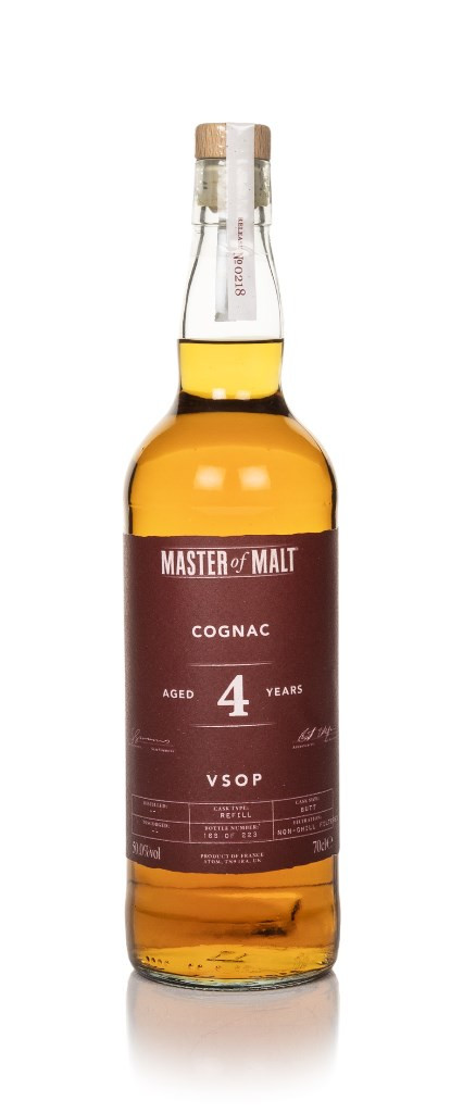 Our exclusive Master of Malt collection expands with a superb bottle of VSOP Cognac here, aged for four years in a single refill butt that yielded a total of just 223 bottles when it was opened. In Cognac speak, VSOP stands for 'Very Superior Old Pale', and to carry this terminology on the label, the youngest spirit in the blend must be aged for a minimum of four years. Four letters (VSOP) = four years. There you go, a handy way to remember.