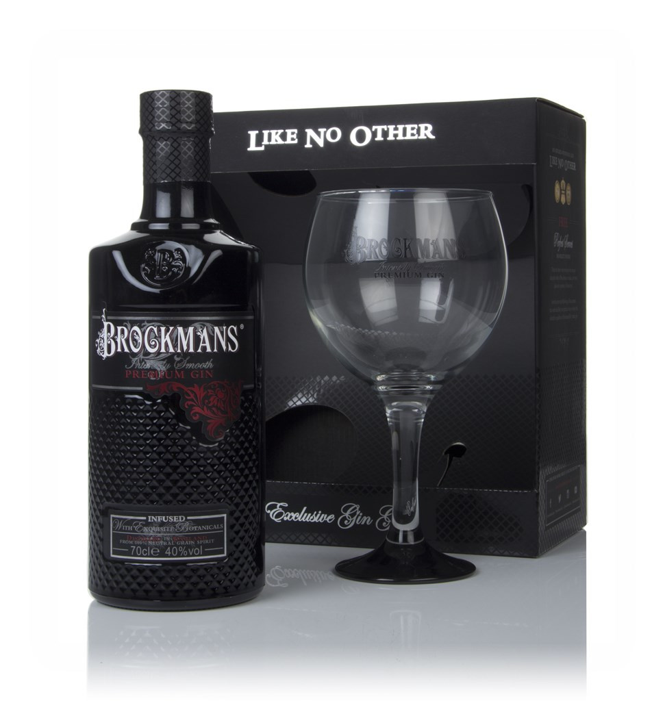A somewhat moody gift pack, containing a bottle of Brockmans Intensely Smooth Gin accompanied by a copa glass (branded of course). Botanicals include Tuscan juniper berries, Bulgarian coriander, blueberries, blackberries and Valencian orange peel, making for a delightfully tasty gin. Did we mention it's smooth?