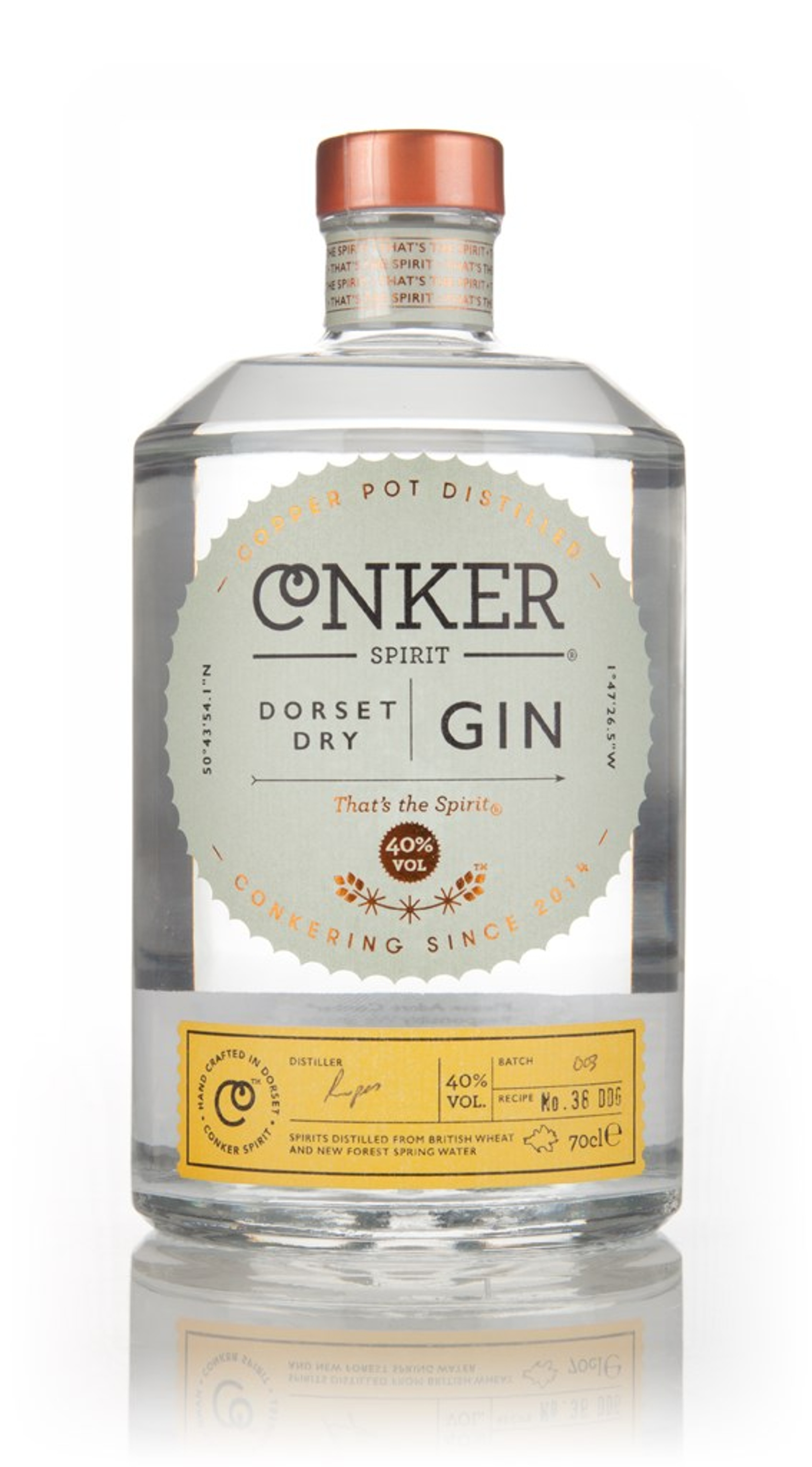 Conker Spirit was founded by Rupert Holloway in the wonderful county of Dorset, home to many local beers but very little in the way of spirits. In walks Dorset Dry Gin from Dorset's first gin distillery! Conker Spirit's Dorset Dry Gin is distilled using British wheat spirit, New Forest spring water and 10 botanicals, including some rather distinctively-Dorset-inspired botanicals - Gorse Flowers, Samphire and Elderberries.