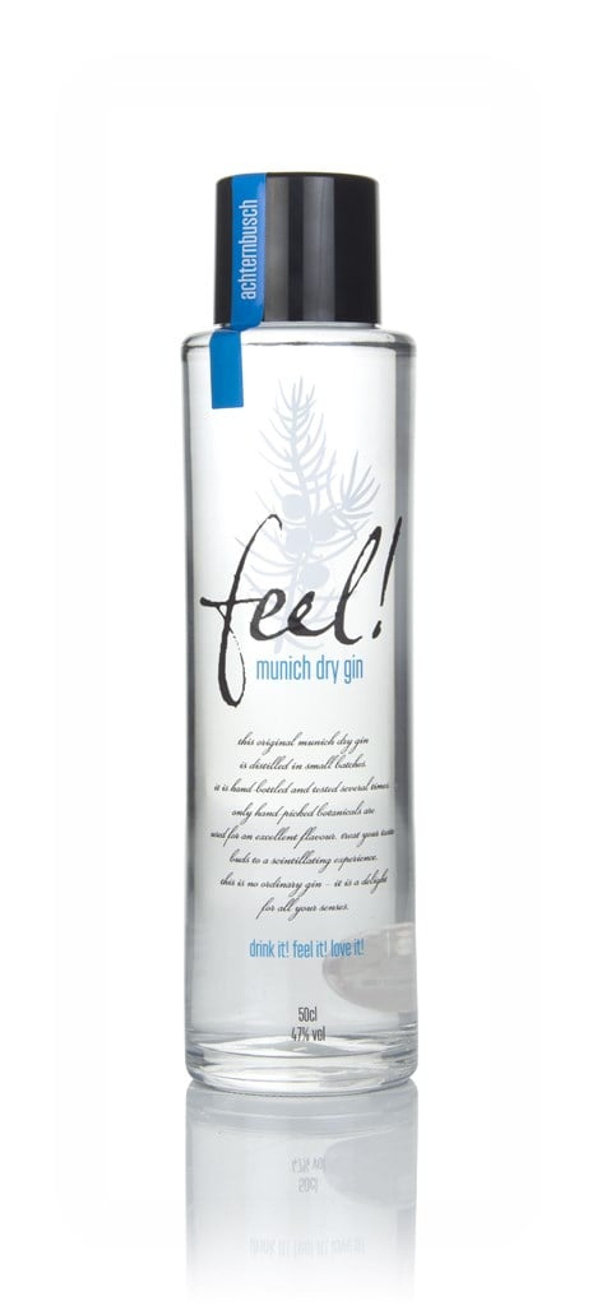 Feel! is a handcrafted, premium dry gin made in Munich, infused with 17 carefully chosen botanicals ranging from the classic (juniper, lime, lavender and coriander) to the more exotic (chokeberries and blueberries). Every ingredient is organic and sourced from local providers – as far as it is possible – or from neighbouring countries.