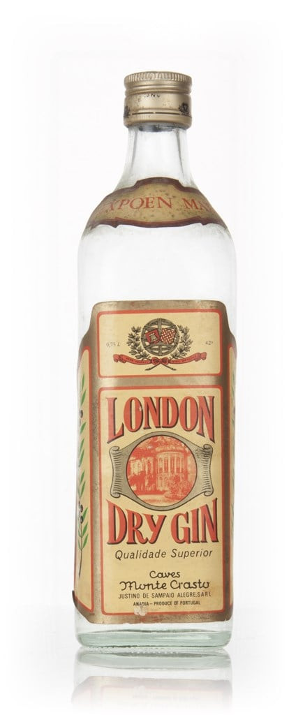 An old and rare 42% yellow label bottling of Caves Monte Crasto London Dry Gin from Portuguese producer Justino de Sampaio, thought to date from the 1970s.
