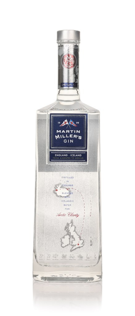 Martin Miller's gin is distilled in pot stills and shipped to Iceland, where it is mixed with Icelandic spring water. It is flavoured with Tuscan juniper, cassia bark, angelica, Florentine orris, coriander, Seville citrus peel, nutmeg, cinnamon and liquorice root.