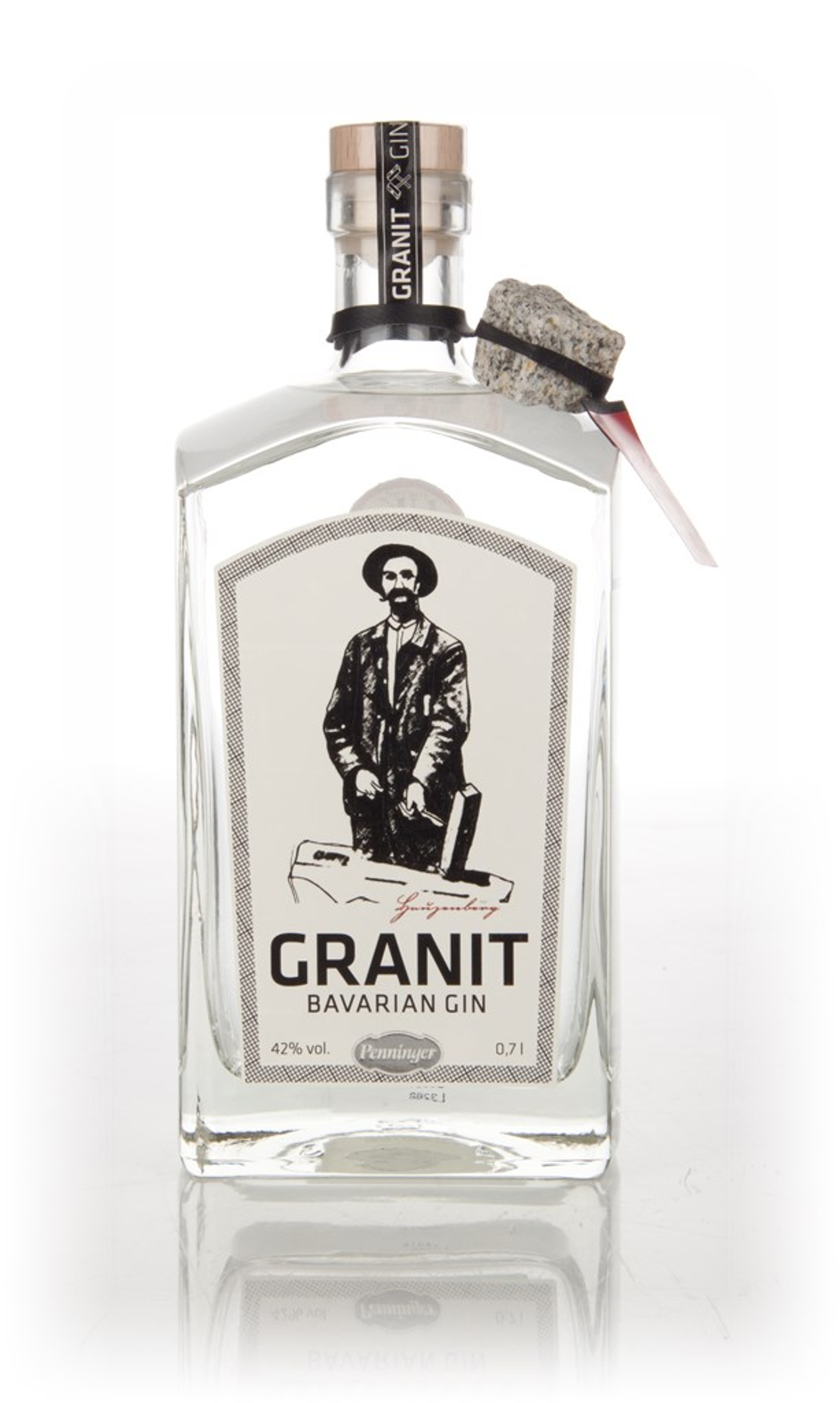 Granit Bavarian Gin is made with a selection of 28 different botanicals (the likes of cardamom, coriander and lemon, as well as plants native to the Bavarian Forest including baldmoney and gentian root), is allowed to rest for months in earthenware vats and filtered through granite stones. Hence the name 'Granit Bavarian Gin'. Also hence the little granite stone which comes with every bottle.