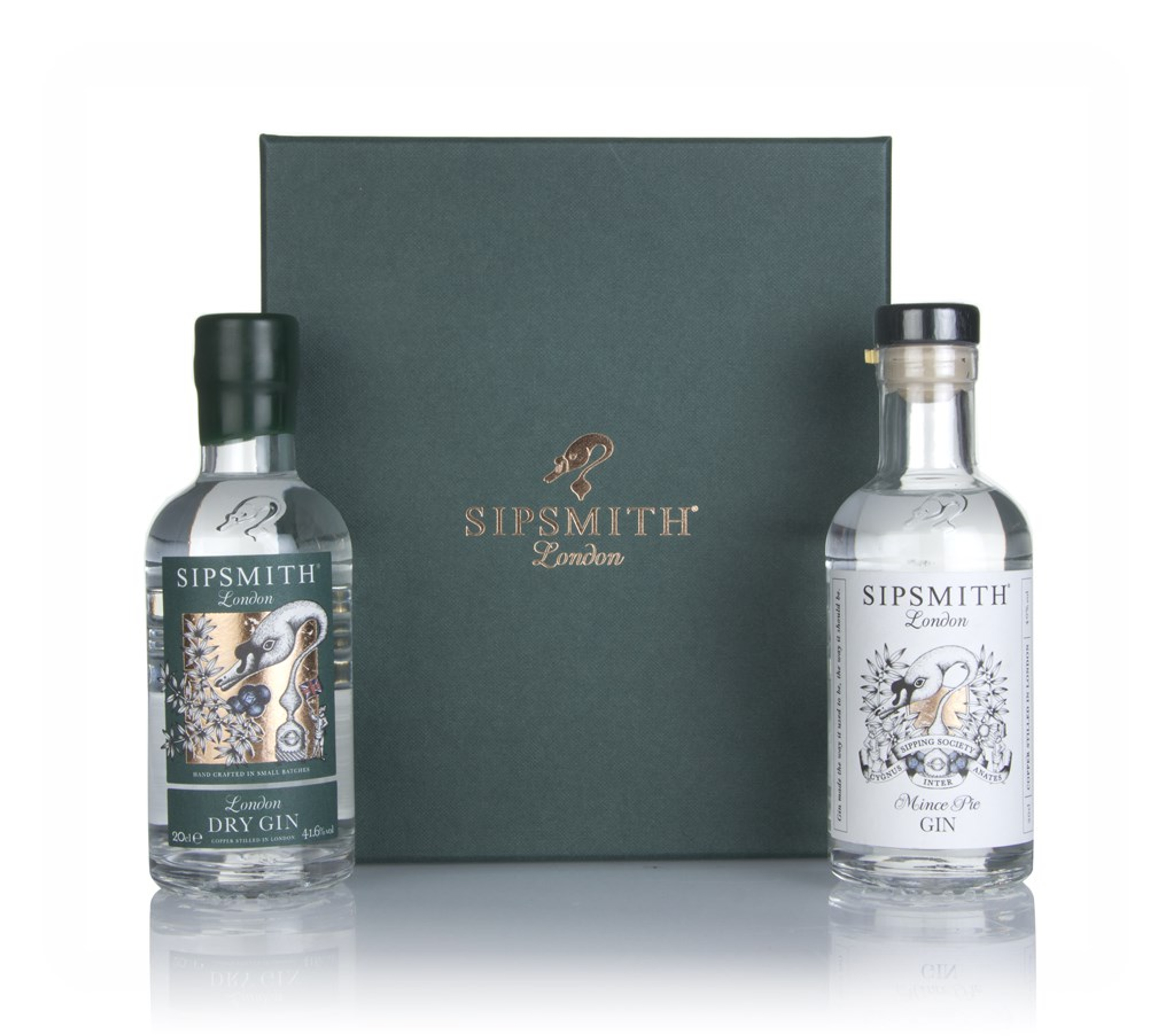 A fantastic festive set from those ever-talented Sipsmith chaps! This Christmas Gift Set contains a 20cl bottle of the classic Sipsmith London Dry Gin (41.6% ABV) and a 20cl bottle of the excellent Sipsmith Mince Pie Gin (40% ABV). Made with spiced dried fruit including raisins, sultanas and dates, Mince Pie Gin is exactly what it says on the bottle - tastes like scrummy mince pies as well as gin!