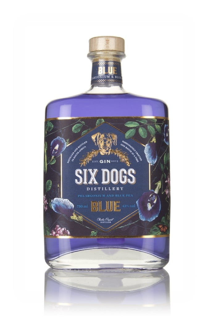 This Six Dogs classic dry gin was created using botanicals such as freshly cut lucerne (Alfalfa), hand-picked rose pelargonium (geranium) and the blue pea flower, which gives the gin its striking blue colour. Six Dogs named this gin Blue, not only because of this key ingredient, but because it's also the name of the smallest dog in its pack of six.