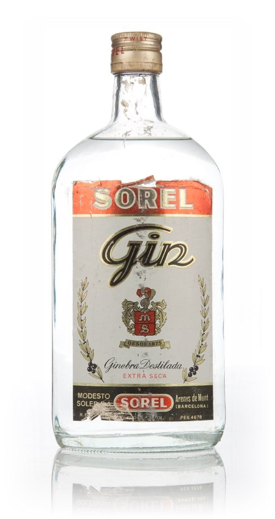 1970s gin, made by Sorel in Barcelona over 30 years ago. A big ol' 1 litre bottle of it, too! The label has been scuffed a little bit, but the bottle is in good shape otherwise.