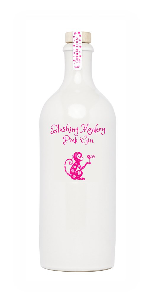 Blushing Monkey Pink Gin from The Gin Kitchen distillery is a blend of The Gin Kitchen Gutsy Monkey Winter Gin and sweet black grapes.