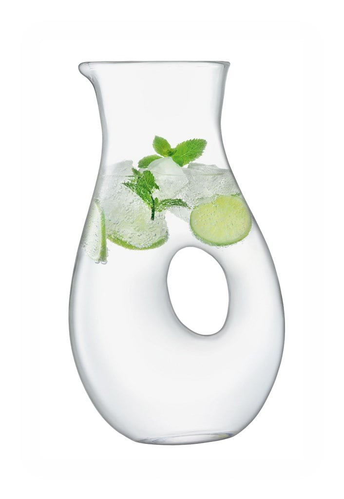 An exceptionally snazzy Ono Jug from LSA, which has been mouth blown, has a capacity of 1.2 litres, and features a hole through the middle! Molten glass is pierced while hot to achieve this, which is very cool indeed. This will need to be hand washed when the time comes.