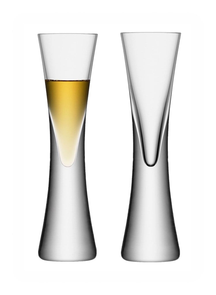 A pair of immensely stylish Moya Liqueur Glasses from LSA, with a capacity of 50ml and a very sleek design. Perfect for impressing your friends not only with the tasty liqueurs, but also with your fine taste in glassware. These will need to be hand washed after you're impressing your friends.
