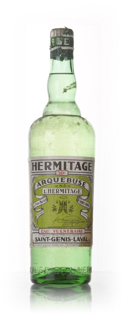 A rare old bottling from the 1960s of Arqubuse made from 33 plants, chosen for their medicinal properties, at the Saint-Genis-Laval Hermitage Monastery. Legend has it that the liqueur had traditionally been used to treat people injured by arquebus shot, hence the name!