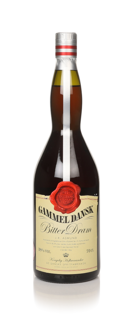 Gammel Dansk is a Danish bitters, and the name literally means "Old Danish". It was first created in 1961 and it is flavoured with herbs and spices including star anise, nutmeg, ginger, laurel, gentian, Seville orange, cinnamon and others. The recipe remains a secret.