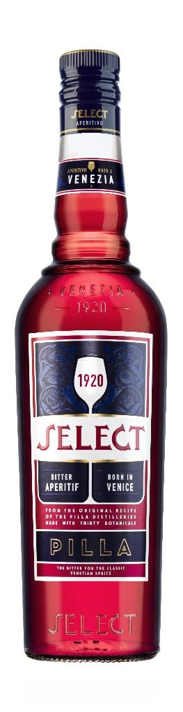 "Born in Venice in 1920" Aperitivo Select is made with a selection of 30 botanicals, and it's the star ingredient in the a Venetian Spritz - carefully mix three parts Prosecco with two parts Select and one part soda over ice, and then garnish with a green olive.