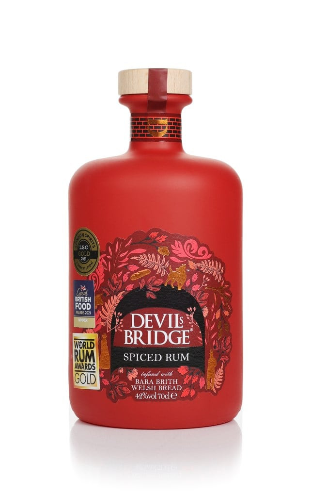 This particular spiced rum hails from Devil's Bridge in Wales, inspired by a Welsh legend involving a woman and her dog tricking the devil himself. Oh, and the cunning trick happens on a bridge, of course. Anyway, the rum was initially matured in bourbon barrels in the tropical climate of the Caribbean, before it was shipped over to Wales and treated to the addition of bara brith (a spiced Welsh fruit cake), Glengettie black tea, and Shirgar Carmarthenshire butter along other classic spices. A uniquely Welsh rum, for sure!