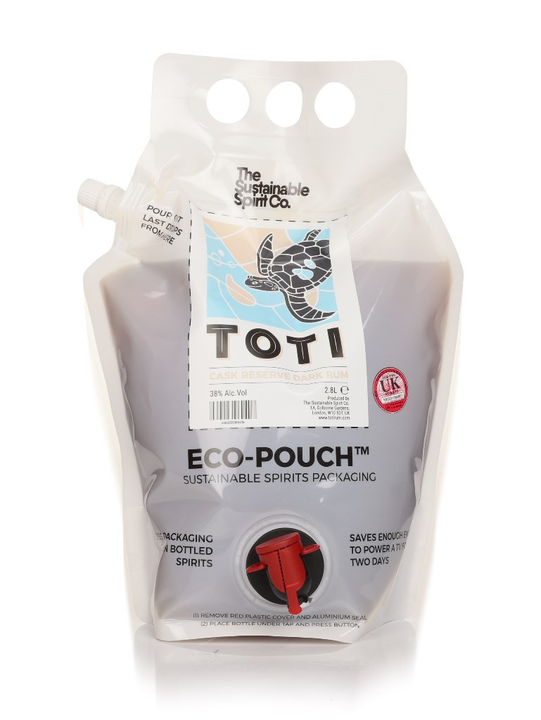 The Sustainable Spirit Co. brings you a sustainable alternative to glass bottles in the form of the Eco-Pouch! This particular one holds Toti Dark Rum, enough to fill up four bottles. Now, it looks like a bottle is for life, so it's lucky that Toti bottles look pretty awesome, complete with turtles and all. Plus, the pouches save on the transport weight of bottles, excess glass packaging and the carbon cost of producing the glass bottles!