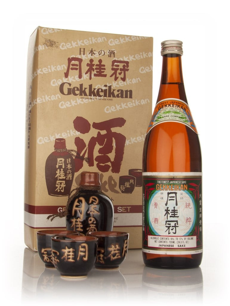 A very handsome sake set, perfect for any lover of the Japanese drink. This set includes a full sized bottle of Gekkeikan sake, a porcelain genzo tokkuri jug and 3 porcelain cups.