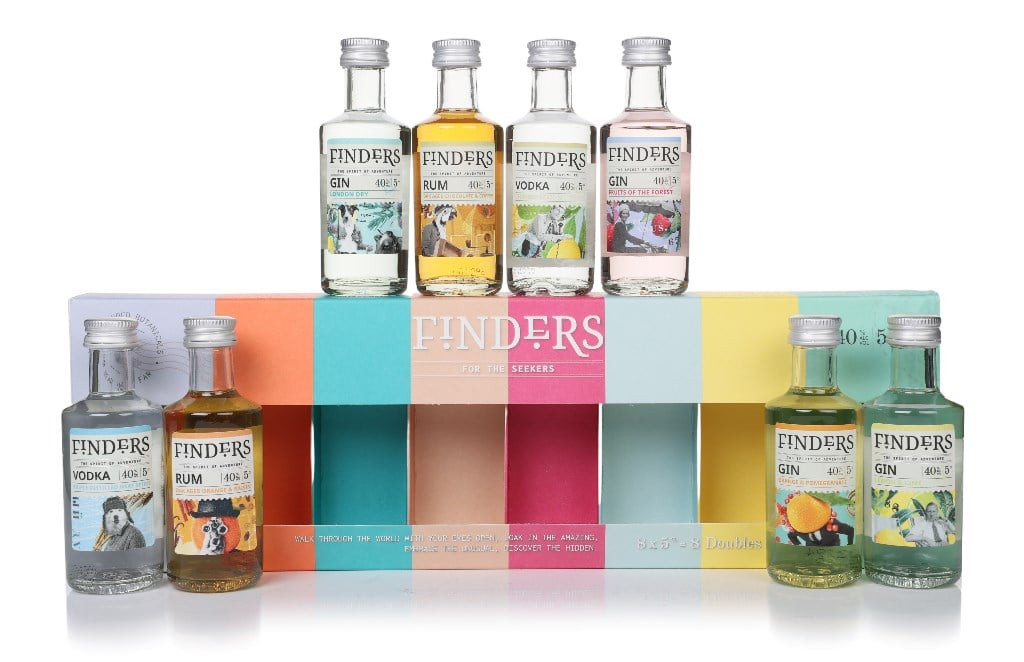 A brilliant bunch of miniatures from Finders, exploring its fabulous range of flavoured spirits! The set includes eight 50ml bottles, including Finders Vodka, Finders Oak Aged Orange & Raisin Spiced Rum, Finders London Dry Gin, Finders Oak Aged Chocolate & Coffee Spiced Rum, Finders Sherbet Lemon Vodka, Finders Fruits of the Forest Gin, Finders Orange & Pomegranate Gin, and Finders Lemon & Lime Gin.