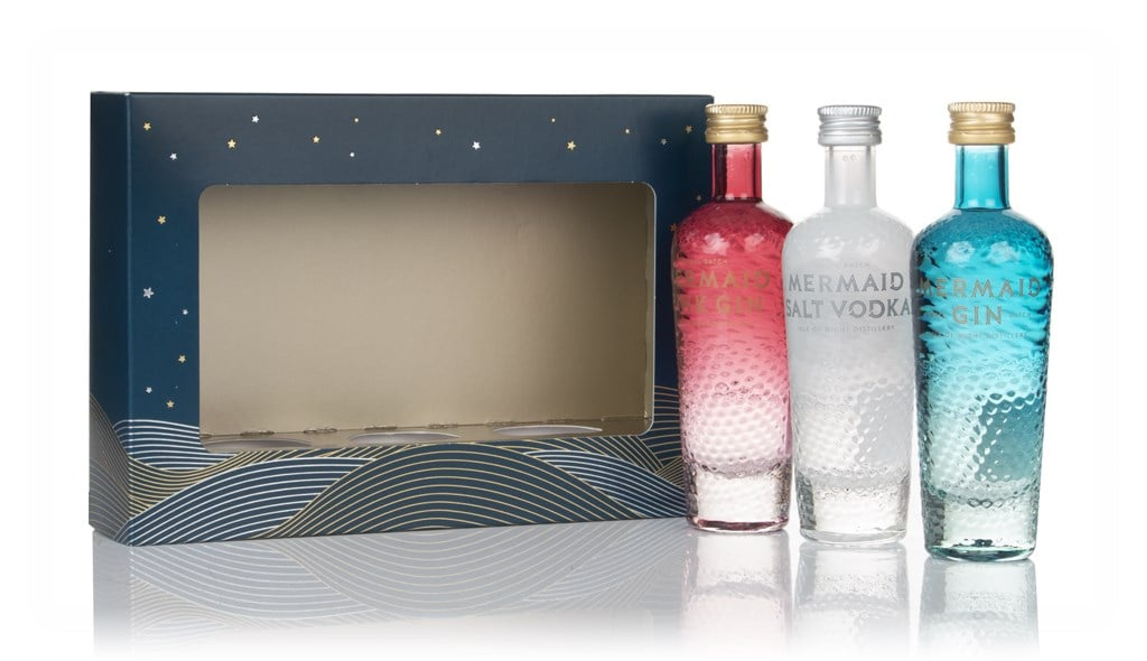 A triple pack of miniatures from the Isle of Wight Distillery and its Mermaid Gin and Vodka range! This set features a 5cl bottle of those following fantastic tipples: Mermaid Gin, Mermaid Pink Gin, and Mermaid Salt Vodka. Pleasingly, they're presented in bottles that look like tiny versions of their very snazzy full-sized counterparts, which is always wonderful to see.