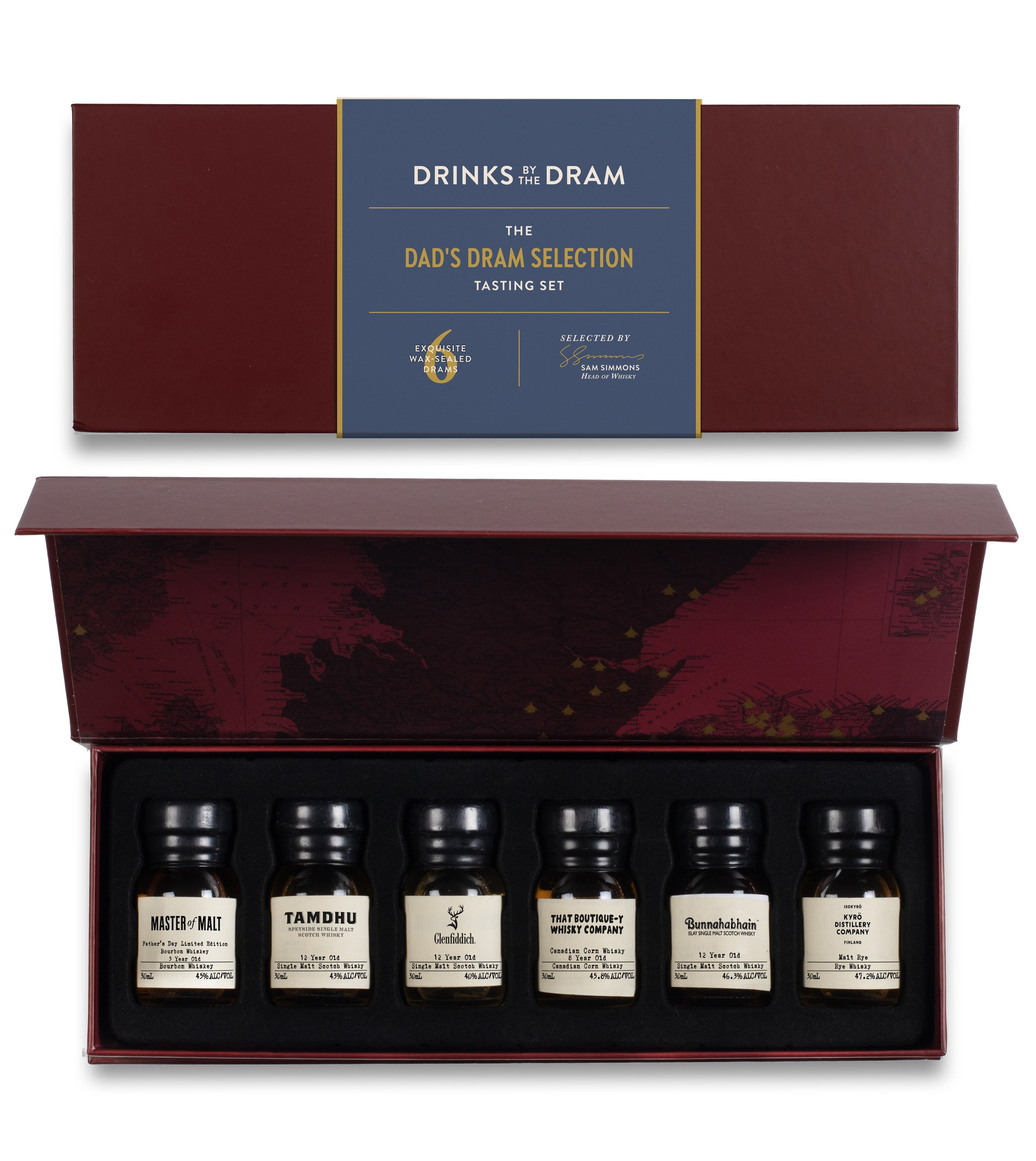 An impressive selection of six 30ml wax-sealed samples of whisky – ideal for any day in a Dad’s life! A top gift for seasoned whisky drinkers and adventurous newcomers alike, packed with tasters from some of the world's top producers. Including a dram of our Father's Day 5 Year Old Bourbon, 'Blended by a Dad, for Dads'. Also available in Black, Blue and Green.