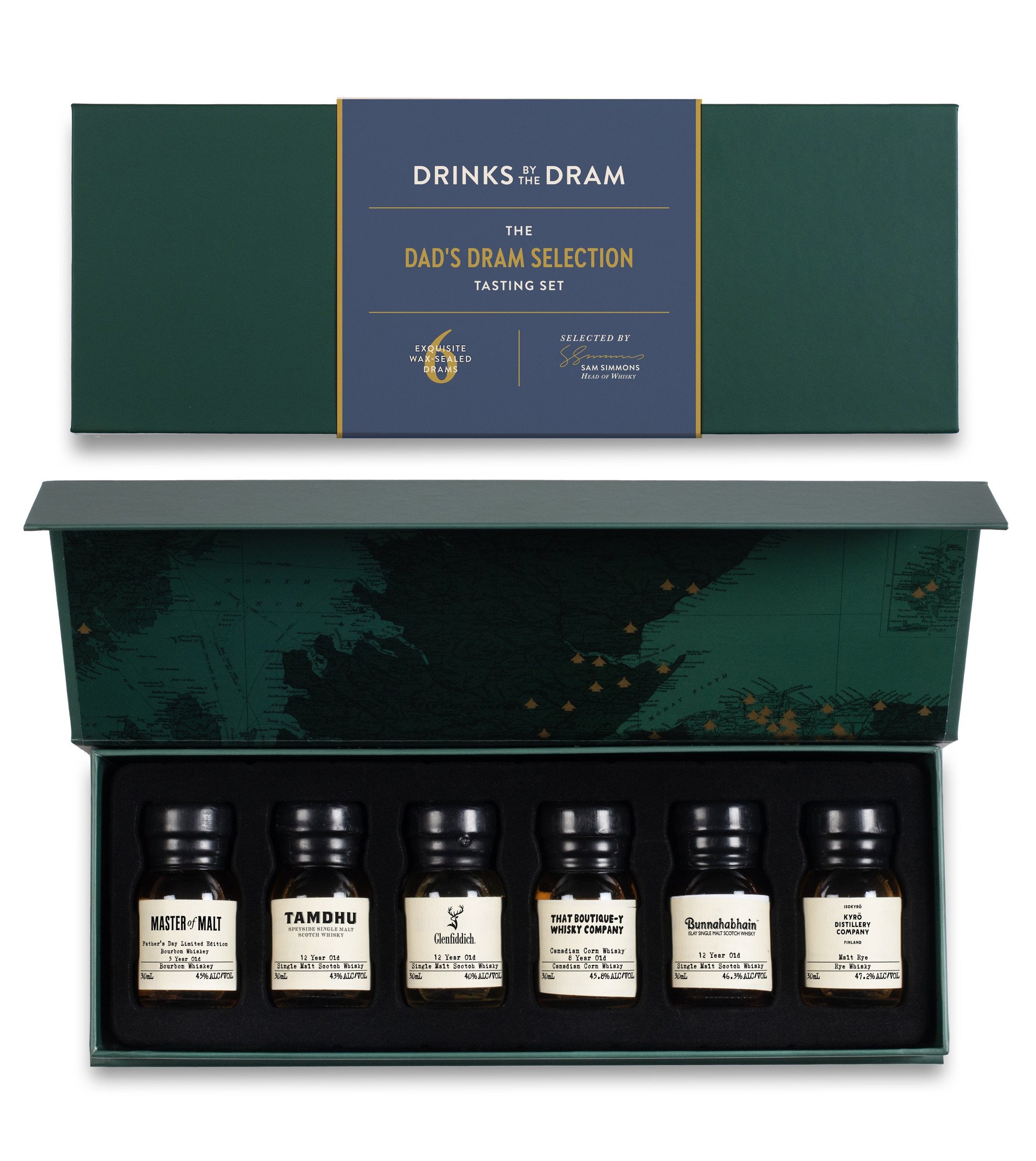 An impressive selection of six 30ml wax-sealed samples of whisky – ideal for any day in a Dad’s life! A top gift for seasoned whisky drinkers and adventurous newcomers alike, packed with tasters from some of the world's top producers. Including a dram of our Father's Day 5 Year Old Bourbon, 'Blended by a Dad, for Dads'. Also available in Black, Blue and Red.